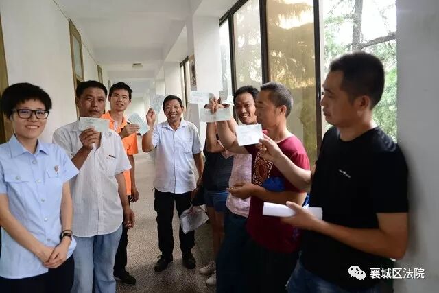 导读 July 2018 “今天拿到钱了,我们真是高兴!”7月12日一大早,襄城区法院执行局门口挤满了满脸笑容的农民工代表,15名务工人员领取了期盼多时的19万余元血汗钱。 2018年6月,15名农民工拿着劳动仲裁裁决书,向襄城区法院申请强制执行襄阳市某化工公司所欠工资款19万余元。因涉及到农民工兄弟的切身利益,执行法官在收案后第一时间多方查找该公司财产线索,去公司实地了解企业的生产经营状况、资产负债情况以及是否有履行能力,并多次约谈该企业负责人,向他讲明不履行法律义务会给企业以及他个人带来的不利后果。执行法官通过大量的前期准备工作,仅用时一个月就快执快结该案。为保证该批执行款能够及时发放,襄城区法院财务室也特事特办,加班加点核对款项,优先开具转账支票,为执行款的发放提供了有力保障。 一位农民工代表激动地说:“我们这一年多的讨薪过程十分艰辛,前期被各单位推诿踢皮球,好不容易拿到劳动仲裁裁决书,抱着最后一丝希望来到法院,没想到这才一个月时间就拿到钱了,为法院的办事效率点赞!” 近年来,襄城区法院对涉民生、涉困难群体案件优先受理、优先查控、优先处置。同时采取公布失信被执行人名单、发布限制高消费令、实施司法拘留等一系列措施,增强了对规避执行行为的打击力度,有效化解了大量涉民生执行案件矛盾,取得了良好的法律效果和社会效果。